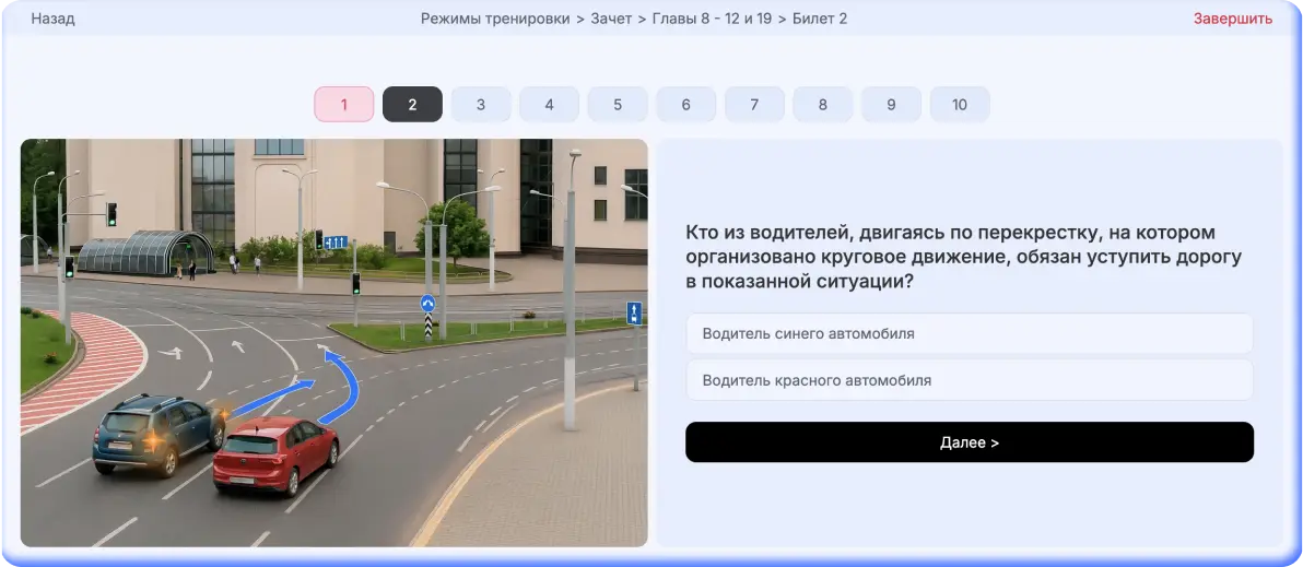 Еще одна важная «фишка» — фотореалистичное качество изображений. Задачи в ADrive выглядят максимально приближенными к реальным дорожным ситуациям. Это помогает задействовать зрительную память и лучше ориентироваться в обстановке. Подобный подход снижает вероятность ошибок, связанных не с незнанием правила, а с недопониманием того, что изображено на рисунке.